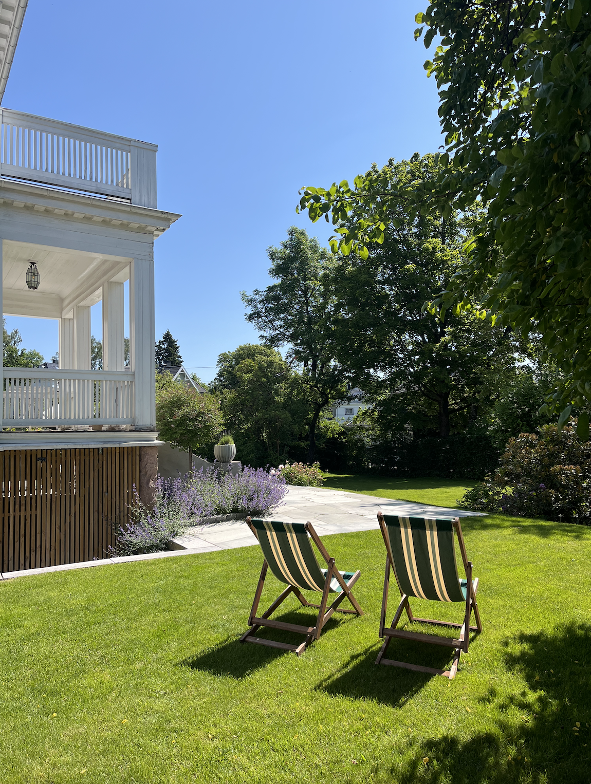 I eplehagen til den klassiske villaen på Vinderen i Oslo er nye uterom utformet i tett dialog med eksisterende kvaliteter på tomten. Oppholdssoner med ulike funksjoner og størrelser tilrettelegger for ulike opplevelser og variert bruk.
